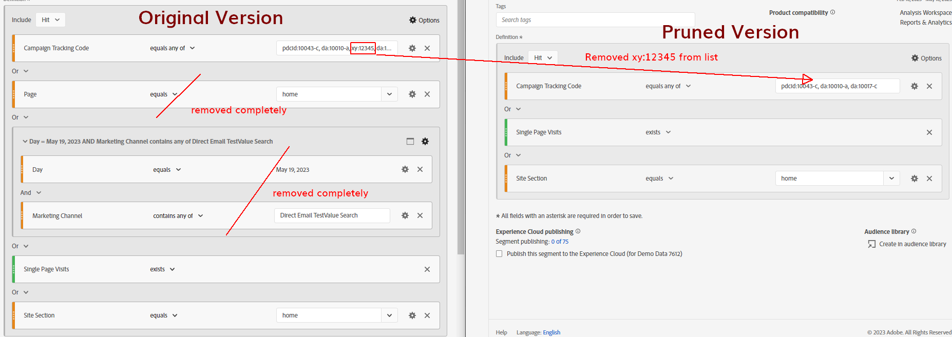 The Pruner then creates an alternative segment in your Adobe Analytics account which you can verify by yourself. Don't worry, it does not change the original segment!